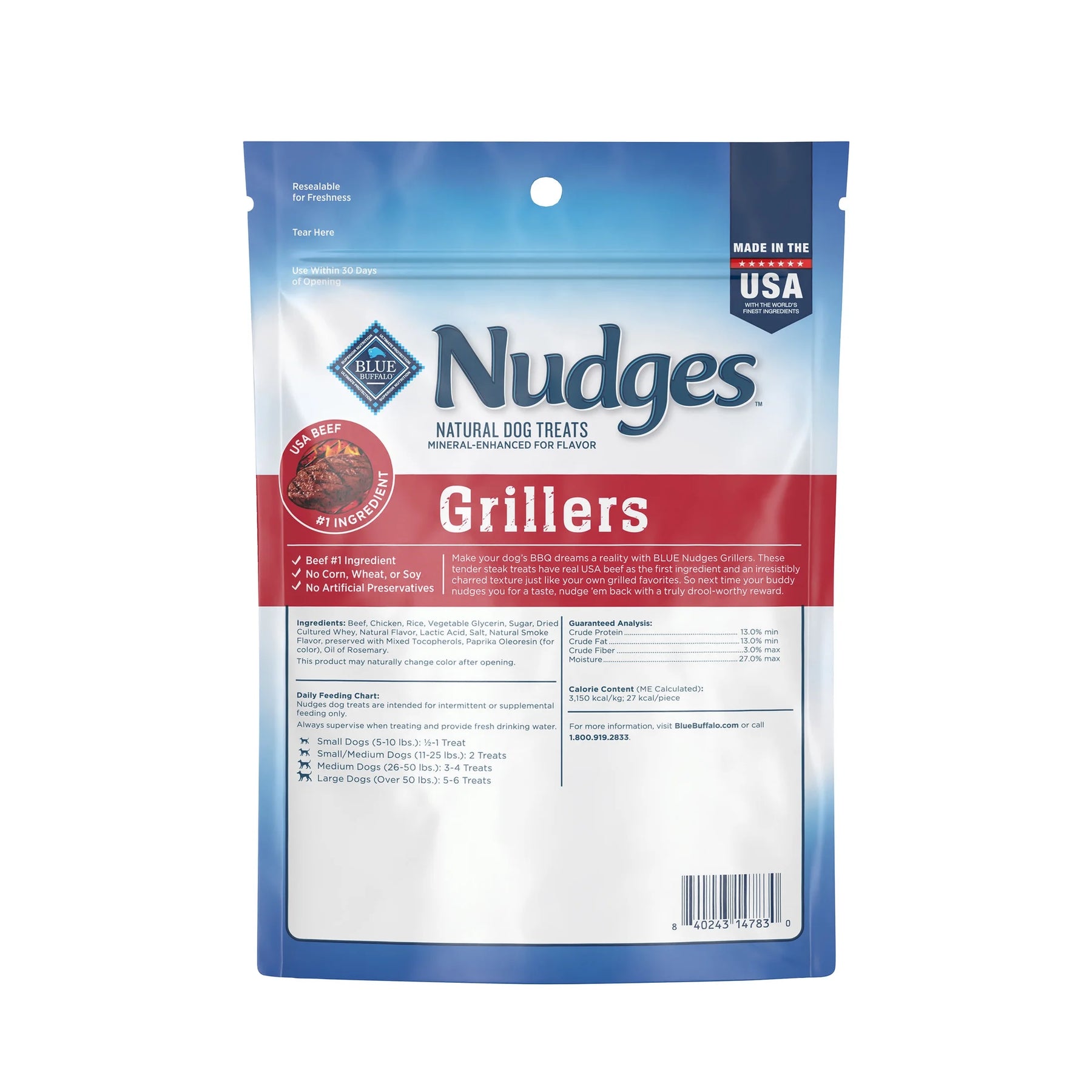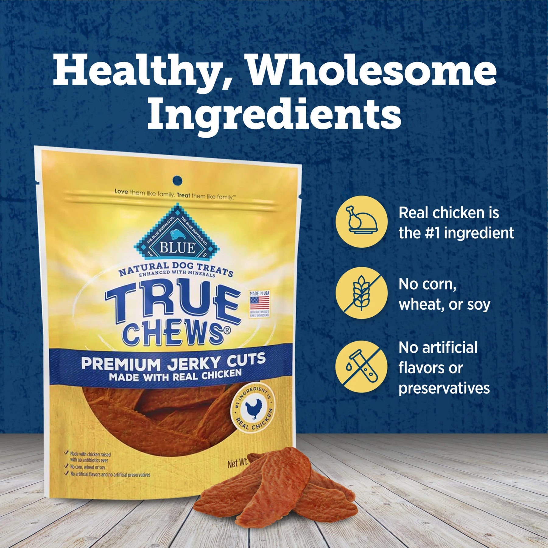 - Contains: One (1) 8-oz. bag of BLUE Nudges Natural Jerky Cuts Dog Treats, Chicken & Duck Recipe