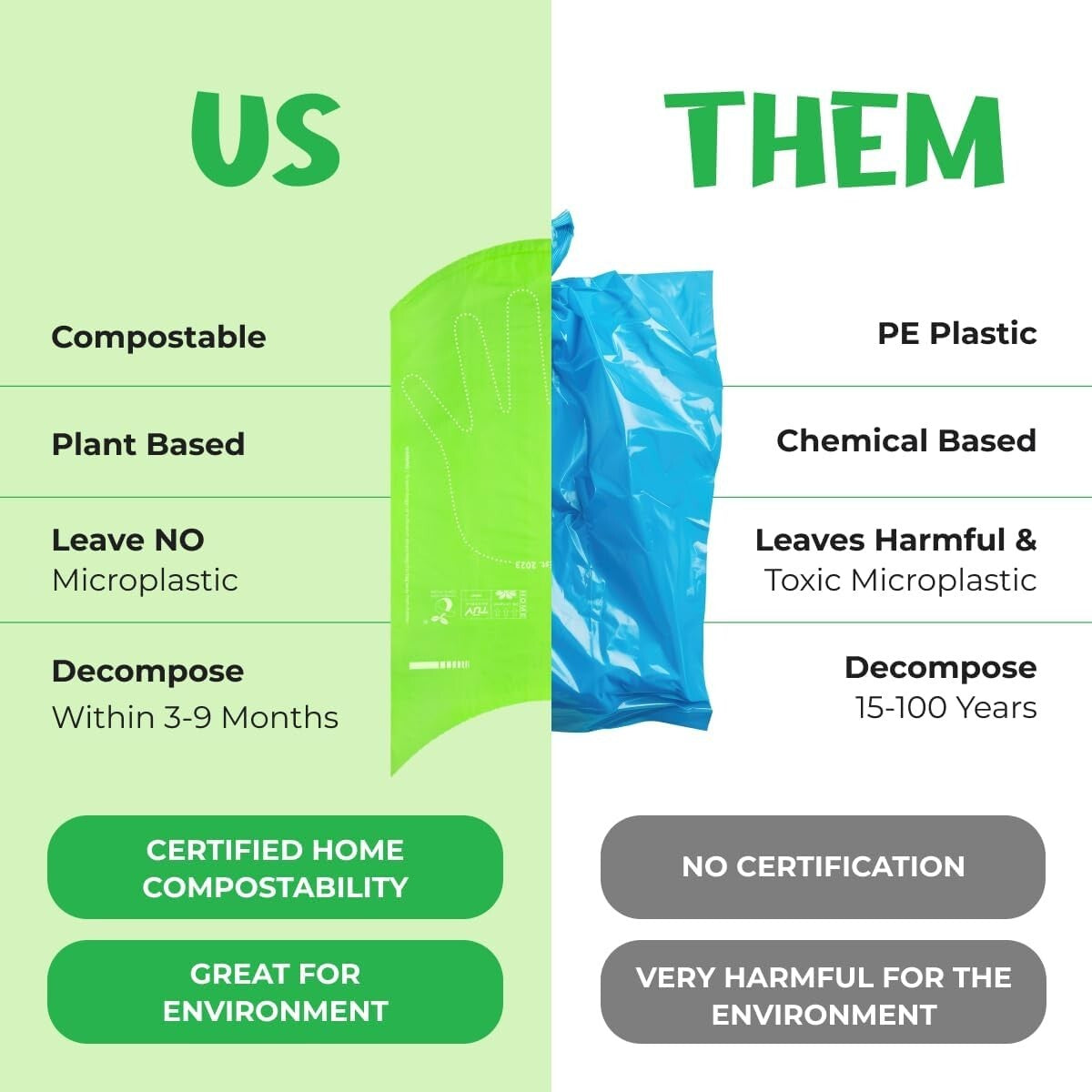 Compostable & Biodegradable: Help reduce your carbon footprint with every bag you use.