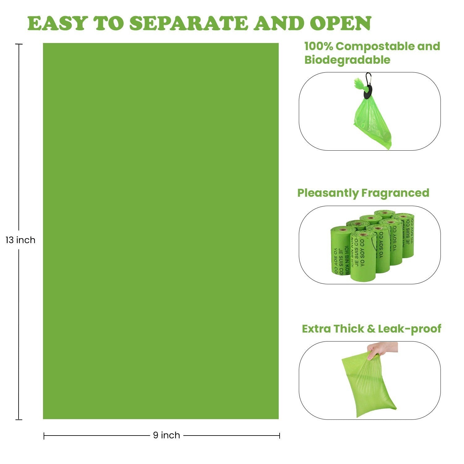 Leakproof & Tear-Resistant: Durable bags that prevent leaks, odors, and tears.